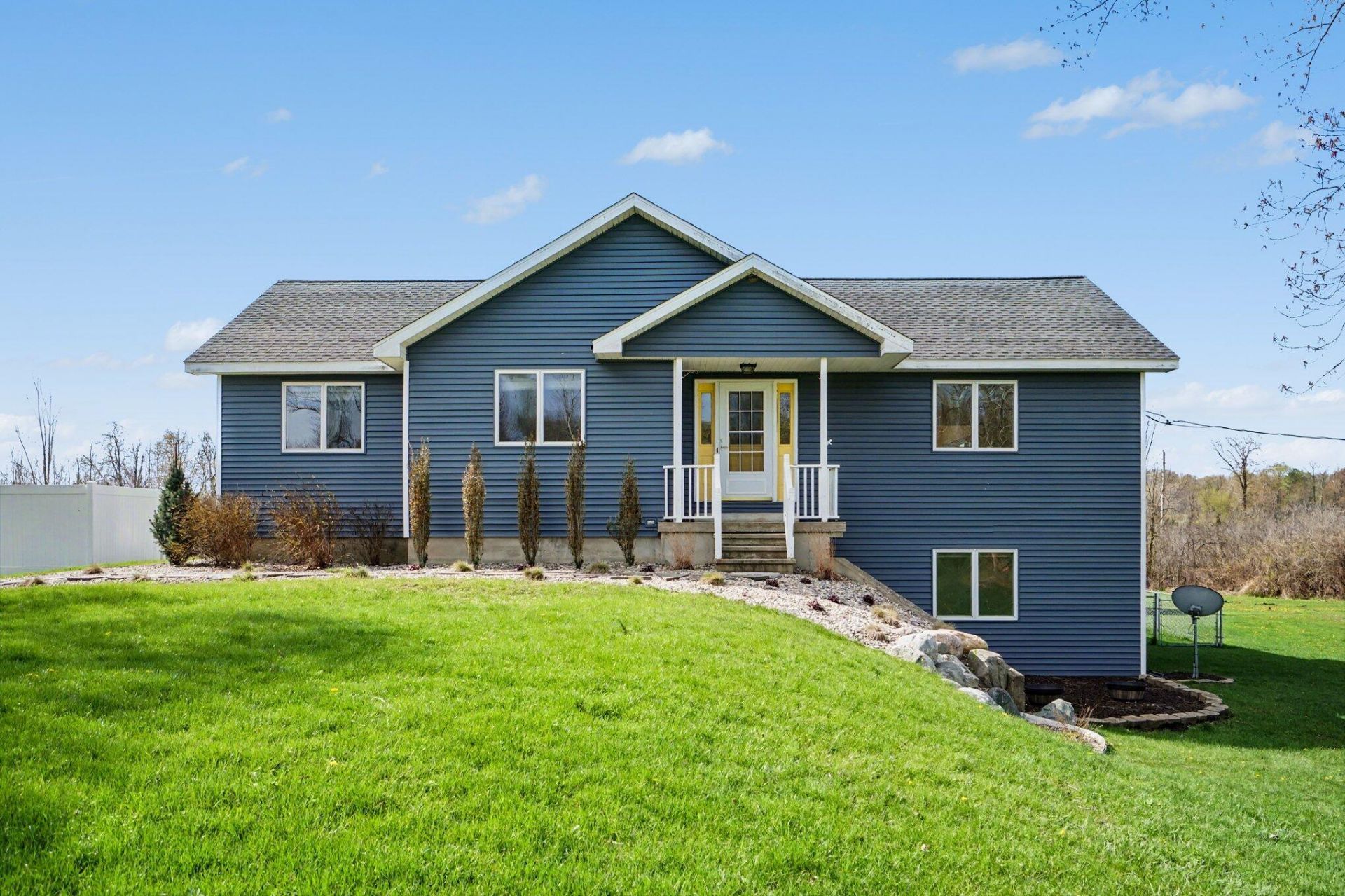 Welcome to this beautiful, freshly painted, walkout ranch home situated on over 7 acres of serene land. This spacious property features 4 bedrooms and 3 bathrooms, providing ample space for families or guests. The inviting open-concept design seamlessly connects the living room, dining area, and kitchen, creating a warm atmosphere filled with natural light. The modern kitchen is well-equipped with brand new stainless steel appliances and plenty of counter space, making it ideal for cooking and entertaining. The master suite offers a private retreat, complete with an ensuite bathroom designed for relaxation. Three additional well-sized bedrooms ensure comfort and flexibility for various needs, whether for family, guests, or a home office.Outdoor living is a highlight of this property, with easy access from the main living areas to the expansive outdoor space. Enjoy your morning coffee on the deck, host gatherings, or simply unwind in nature. The land is ideal for future pole barn,